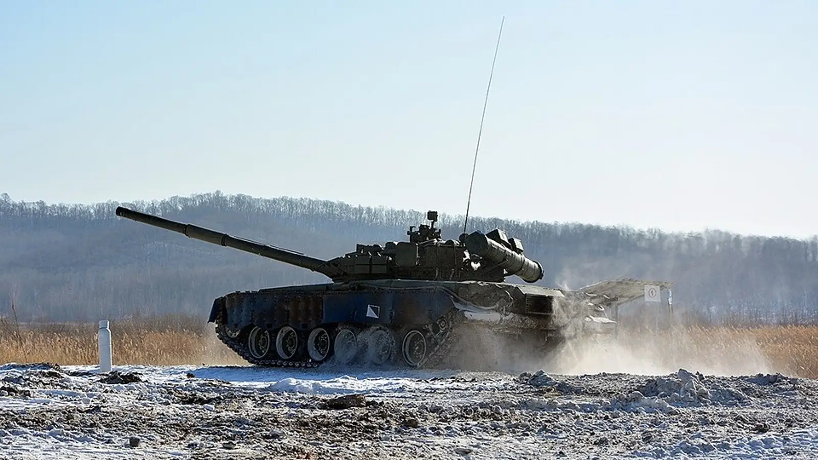 The T-80BVM is one of Russia’s modern main battle tanks. It is based on the Soviet T-80, the world’s first tank powered by a gas-turbine engine as its main propulsion system. A later modification, the T-80B, introduced several improvements, including the upgraded 2A46-2 cannon, the 1A33 fire-control system, the Kobra guided weapon system, and a hydromechanical autoloader with a conveyor holding 28 rounds.