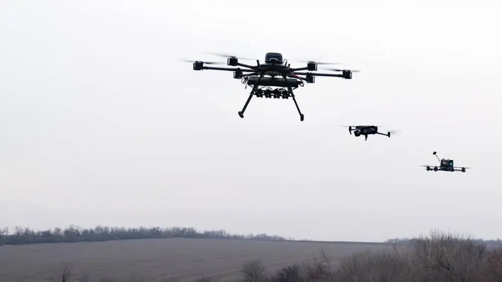 «Это работает следующим образом. В воздухе находится беспилотный самолет-разведчик, который обнаруживает дроны-разведчики ВСУ, на найденную цель наводится FPV-дрон и уничтожает ее»,