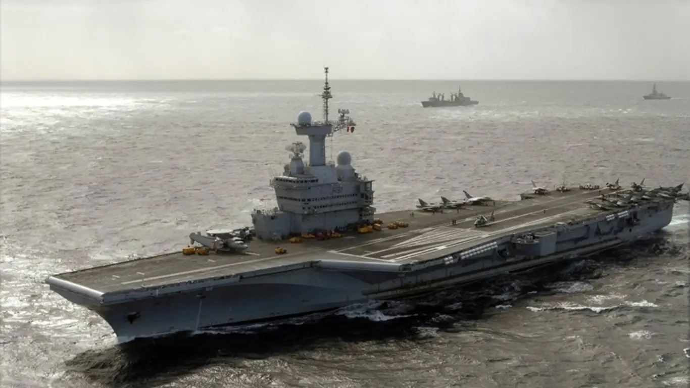 «Шарль де Голль» — единственный действующий авианосец Франции. Корабль был введен в строй в 2000 году. Его авиакрыло может включать до 40 летательных аппаратов, среди которых вертолеты, самолеты дальнего радиолокационного обнаружения и многоцелевые истребители Rafale.